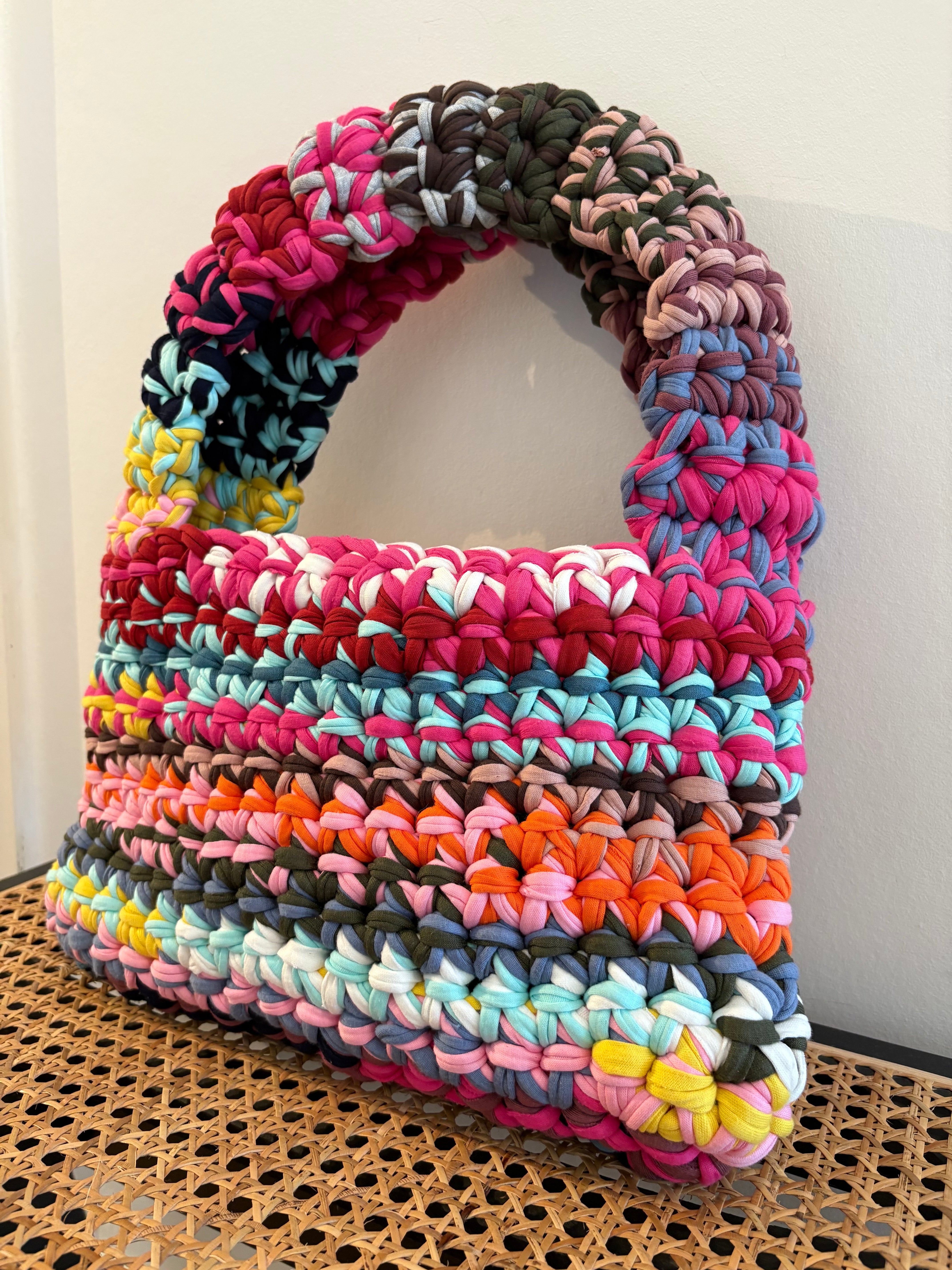 One-of-a-kind handmade with 100% recycled cotton yarn, the Cloé Essentials Handbag provides ample space for essential...